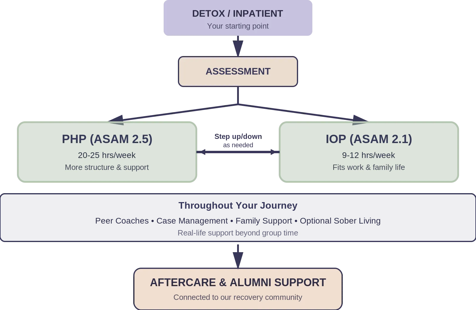 Recovery doesn’t have a single starting line. Some people need daily structure and intensive support right after detox. Others are stable enough to balance treatment with work or family responsibilities.